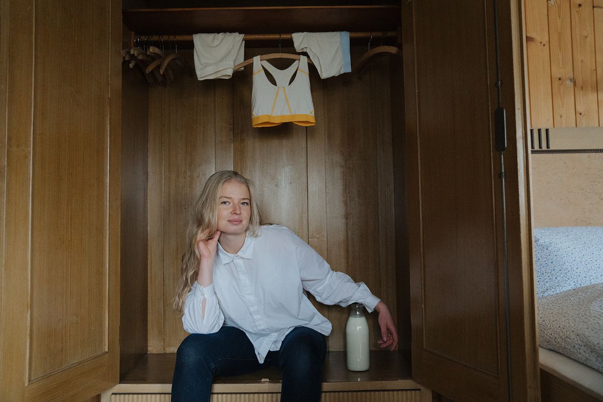 Šije spodní prádlo z mléka a pokukuje i po látce z pomerančů
