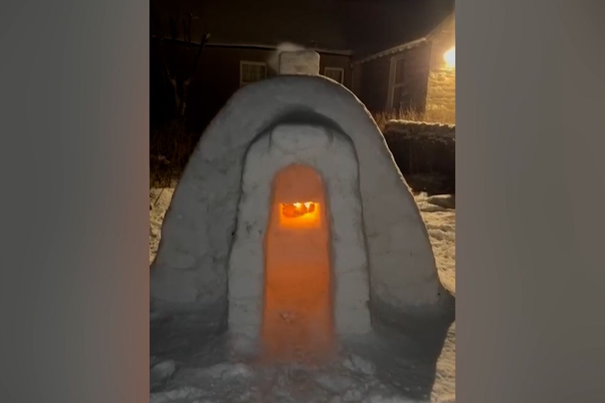 Kameník postavil na zahradě pro dceru iglú s ohništěm a komínem