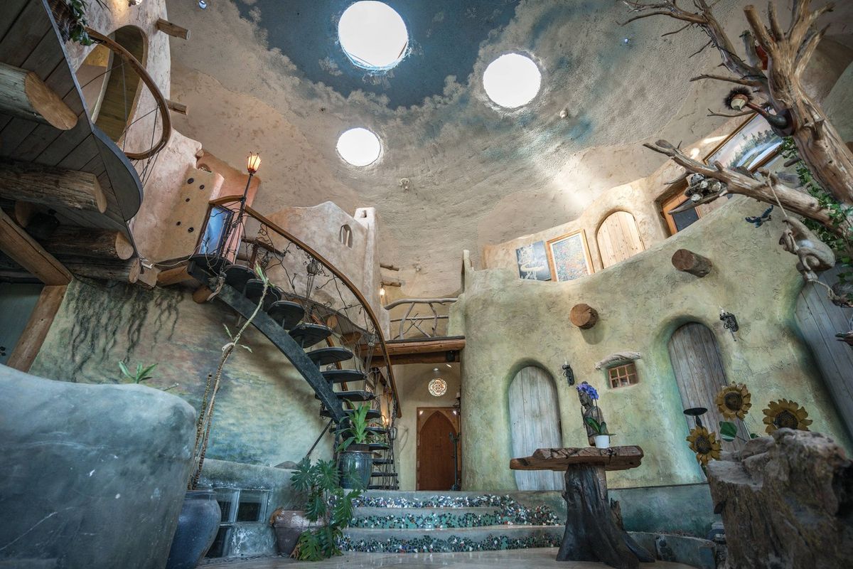 Dům ve tvaru kupole má interiér inspirovaný deštným lesem a pouští