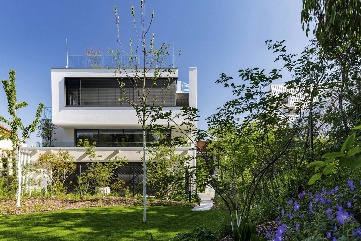 Naproti Winternitzově vile od Adolfa Loose vznikla moderní budova se střešním bazénem
